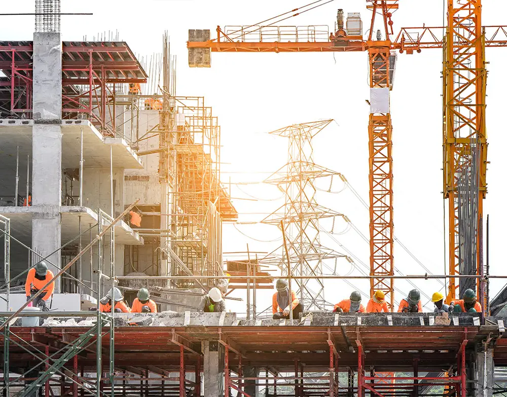 The process of assembling, erecting, and creating structures like buildings, infrastructure, and industrial facilities,